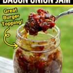 - Use onion and bacon jam as a burger topping – It would be perfect for a big thick pub burger or this Boursin cheese burger.